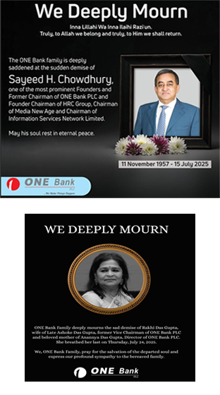 Sayeed Hossain Chowdhury, one of the Founders and Former Chairman of ONE Bank PLC died on Tuesday 15 July, 2025 around 11:10 am in a private hospital in Dhaka (Inna Lillahi Wa Inna Ilaihi Razi'un (Truly, to Allah we belong and truly to Him we shall return). He played the role of the key figure in the development of ONE Bank PLC, where he served as Chairman during two tenures (2001-2008 and 2012-2020) and as a Director in later years.
