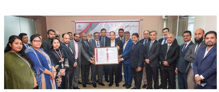 ONE Bank has been awarded a prestigious and internationally recognized ISO/IEC 27001:2022 certificate by the French-based certification authority Bureau Veritas (Bangladesh) Pvt. Ltd. for fulfilling the requirements of the ISO 27001:2022 standard. This is an international standard that specifies the requirements for establishing, implementing, and maintaining an Information Security Management System (ISMS).